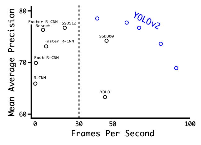 실시간 물체 인식을 염두에 두고 설계되었으며, 속도와 정확도 간의 균형을 유지하는 데 중점을 두었다: