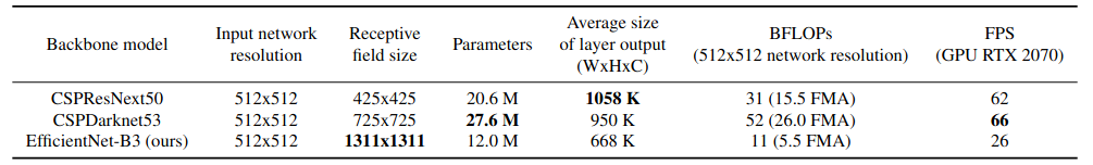 - For GPU: CSPResNeXt50 및 CSPDarknet53 모델은 소수의 그룹(1~8)을 사용하는 컨볼루션 레이어를 활용해 최적화했다.