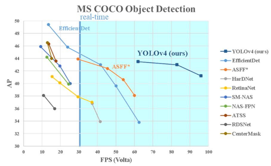 이 연구의 주요 목표는 이론적인 계산량 지표(BFLOP)보다 생산 시스템에서 객체 감지기의 빠른 작동 속도와 병렬 계산에 대한 최적화에 중점을 두는 것이다. GPU를 사용해 실시간으로 고품질의 객체 감지 결과를 얻을 수 있도록 설계된 모델을 누구나 쉽게 학습 할 수 있게 하는게 목표라고한다.
